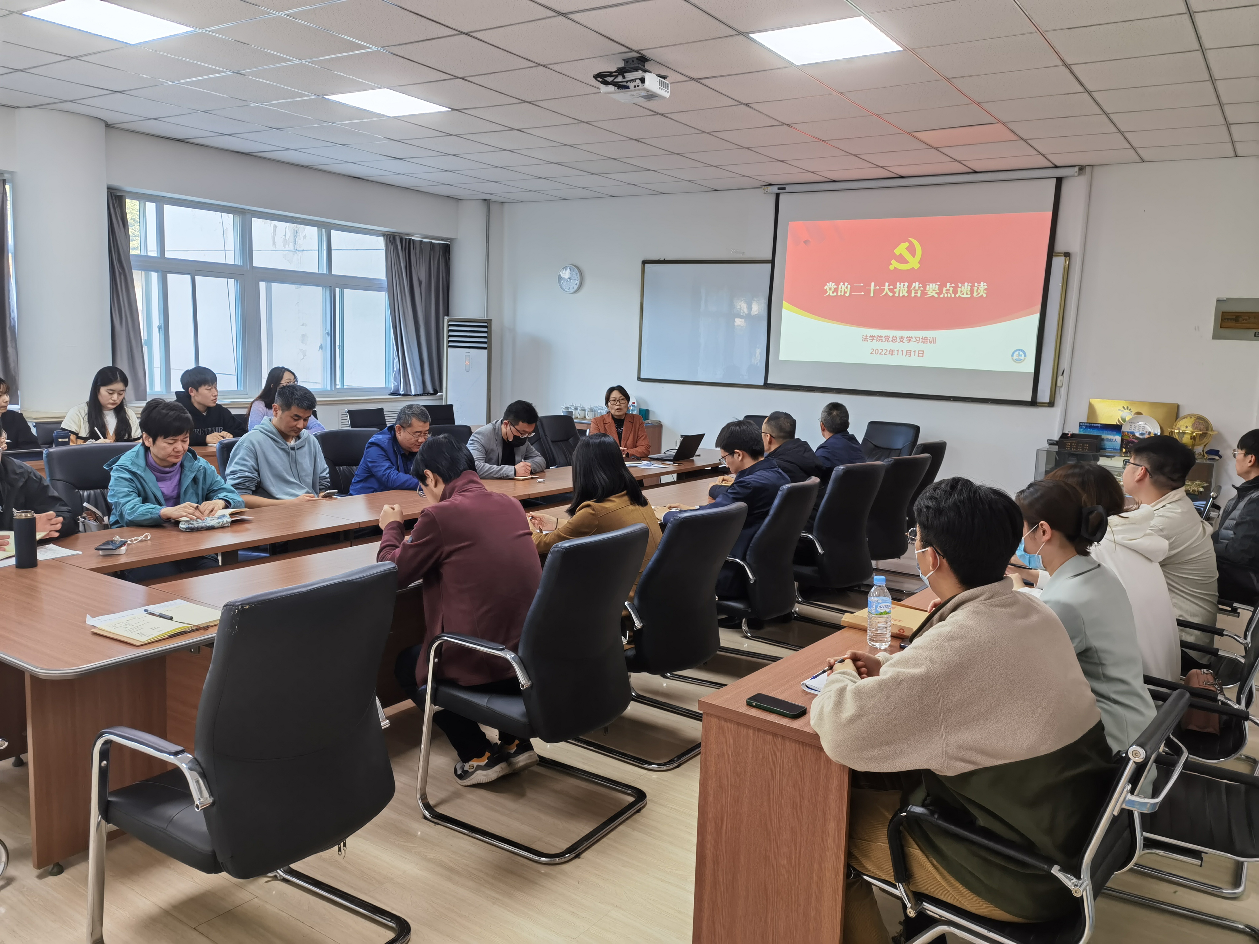 11月1日下午,法學院黨總支在弘毅樓C307會議室組織召開專題會議傳達學習貫徹黨的二十大精神,并對本年度黨建考評工作進行了再部署。法學院黨總支委員、各黨支部支委會成員及黨員代表參加會議。會議由黨總支書記李卉主持。