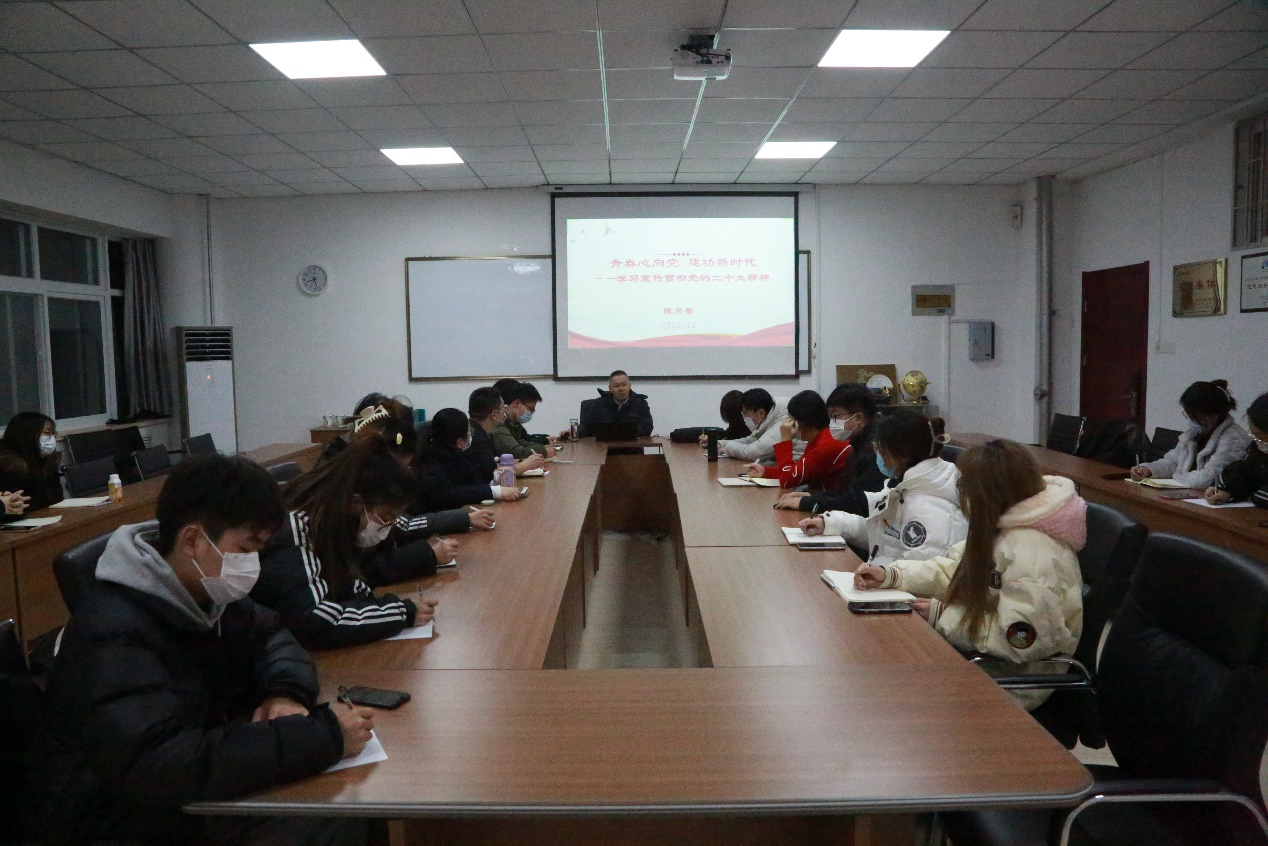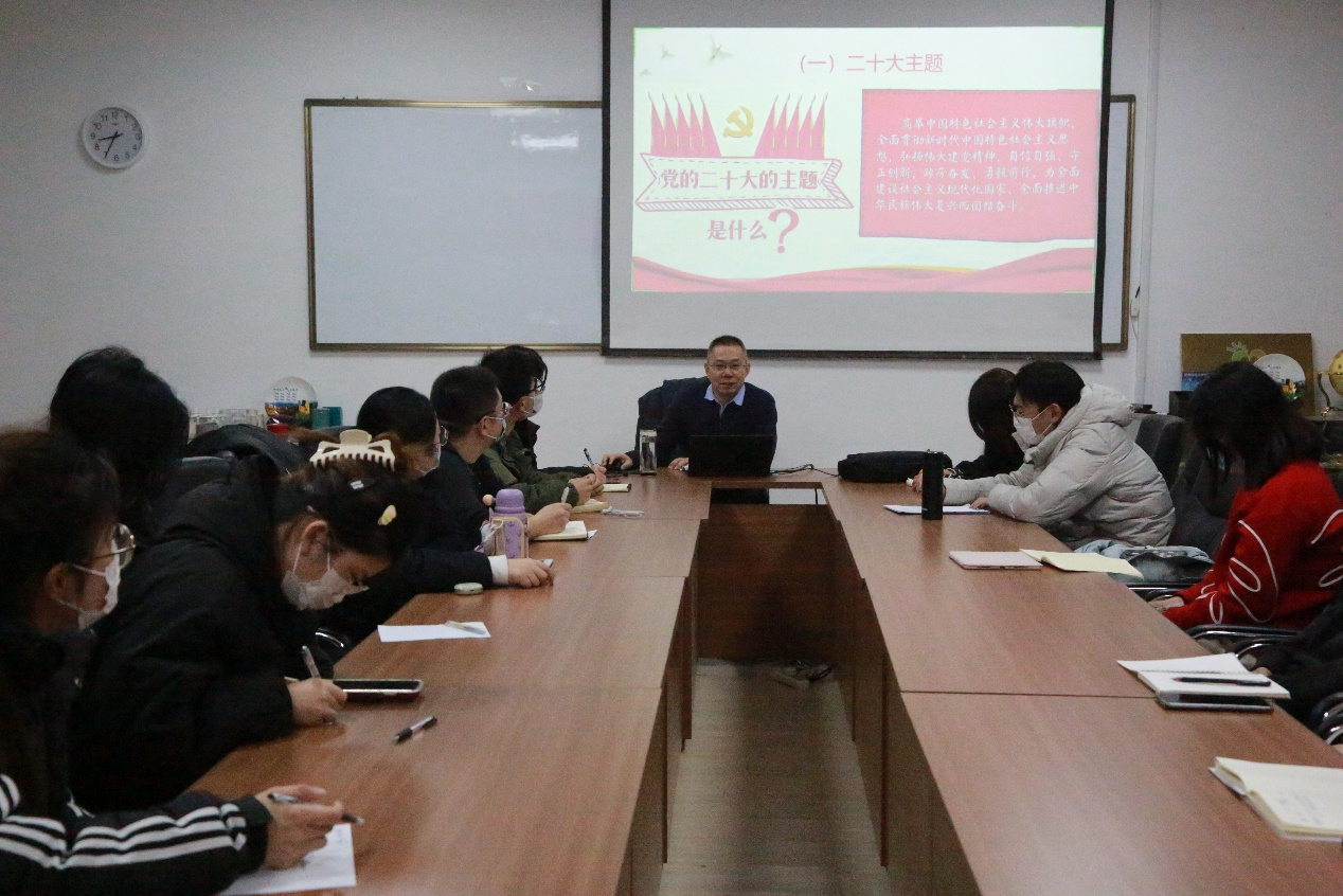 12月1日晚,法學(xué)院黨總支統(tǒng)戰(zhàn)委員、副院長陳為智在弘毅樓C307學(xué)院會議室為法學(xué)院研究生第一黨支部的全體黨員進行“青春心向黨建功新時代”為主題的學(xué)習貫徹黨的二十大精神宣講。