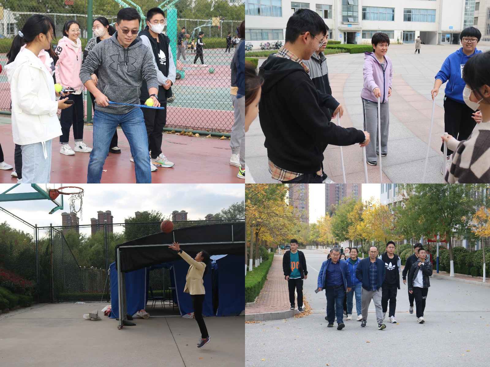 本次健步走活動將趣味體育活動與健步走相結(jié)合,在南苑操場、明德樓、北苑籃球場設(shè)置三個打卡點及“球球快跑”、“不倒森林”、“定點投籃”、“接力跳繩”四項趣味活動。學院教師與學生隨機分組,在健步走抵達打卡點時完成相應(yīng)活動方能繼續(xù)前行。