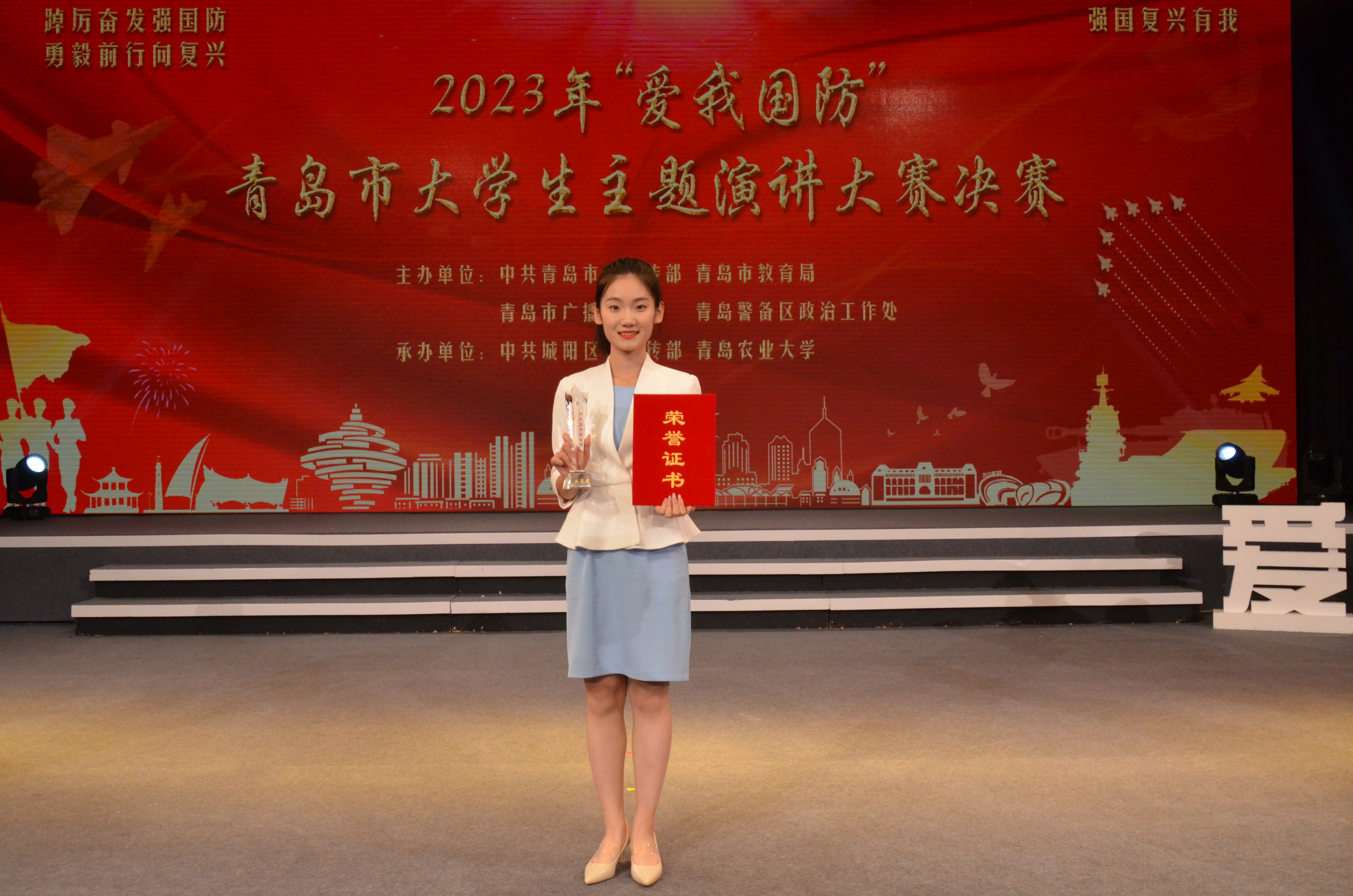 在剛剛落幕的2023年“愛(ài)我國(guó)防”青島市大學(xué)生主題演講大賽中,法學(xué)院周浩演講作品《軍人的模樣在閃光》獲一等獎(jiǎng),李玉喆演講作品《桂花樹(shù)下的國(guó)防故事》榮獲二等獎(jiǎng)。