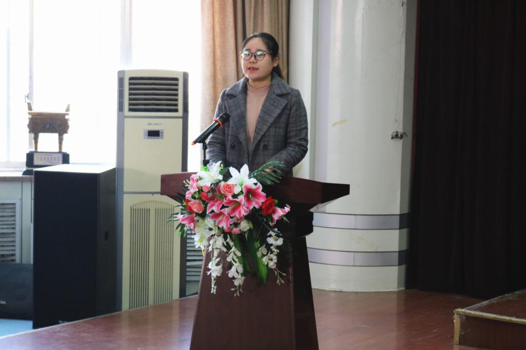 在校學(xué)生代表楊惠杰發(fā)言,她在發(fā)言中表示在今后的學(xué)習(xí)和工作中將向優(yōu)秀校友看齊,提倡每一位同學(xué)要常懷感恩之心,不忘母校哺育之恩,常回家看看。