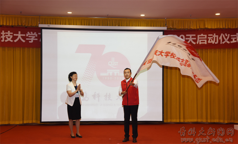 黨委副書記張淑華宣布70周年校慶志愿者服務(wù)團(tuán)成立并向志愿者代表授旗。
