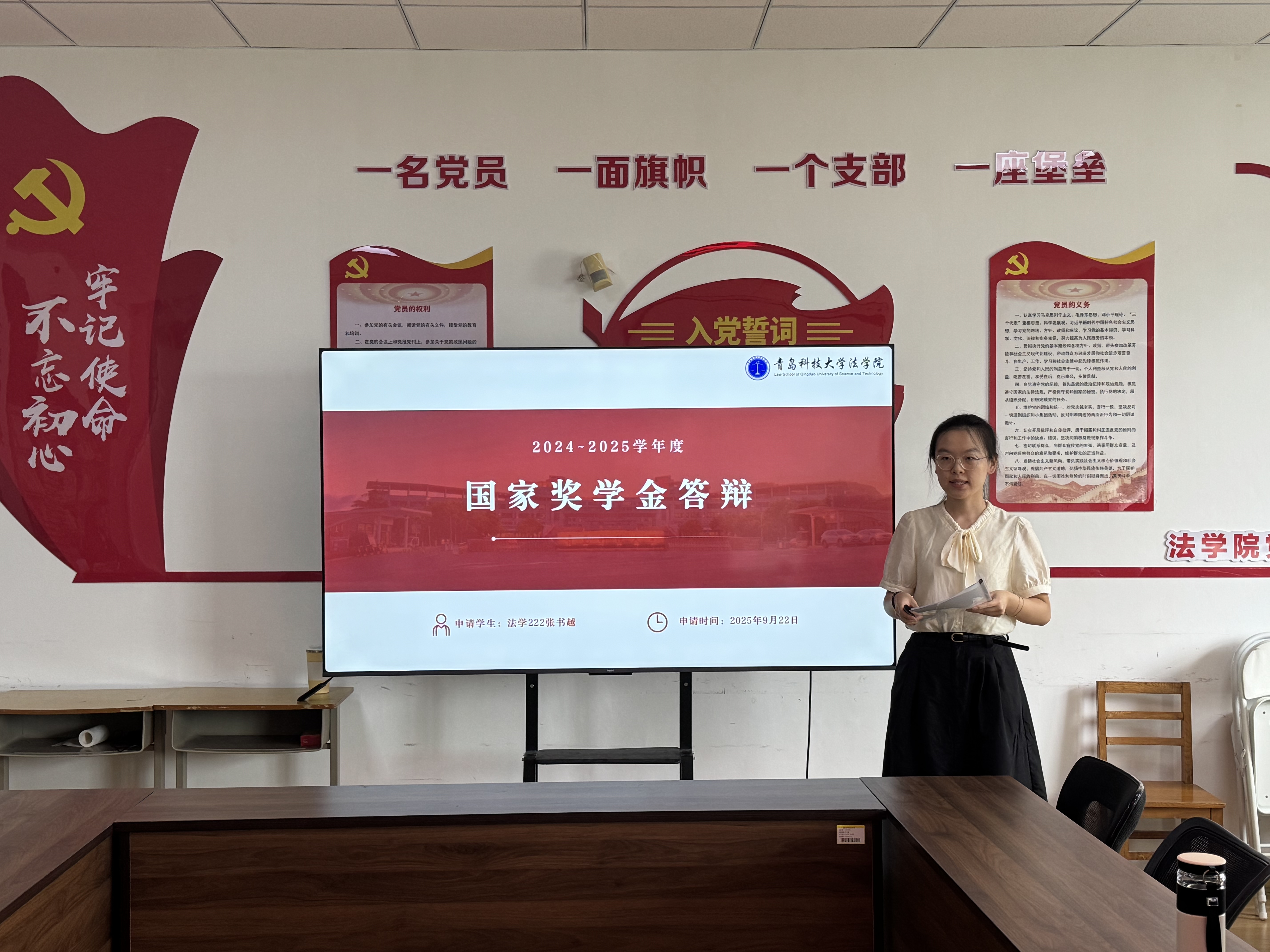 為充分發(fā)揮榜樣引領(lǐng)作用,激勵青年學子勤奮學習、積極進取,近日,法學院在黨員活動室舉行2024-2025學年國家獎學金、省政府獎學金答辯評審會。院級獎學金評審委員會成員、全體候選人參加會議。本次答辯評審會由王宇主持。