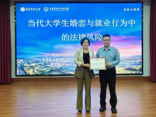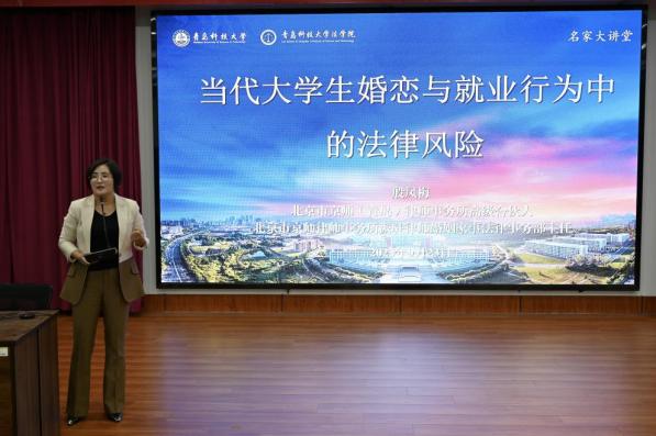 9月23日晚,法學(xué)院“名家大講堂”在弘毅樓A201模擬法庭成功舉辦。本期講堂的主題為“當(dāng)代大學(xué)生婚戀與就業(yè)行為中的法律風(fēng)險(xiǎn)”,北京市京師(青島)律師事務(wù)所高級(jí)合伙人,北京市京師律師事務(wù)所派駐律師婚姻家事法律事務(wù)部主任殷鳳梅受邀主講。講座由法學(xué)院青年教師余婭楠主持,法學(xué)院副院長(zhǎng)李鑫出席講座,法學(xué)院研究生代表參加了本次講座。