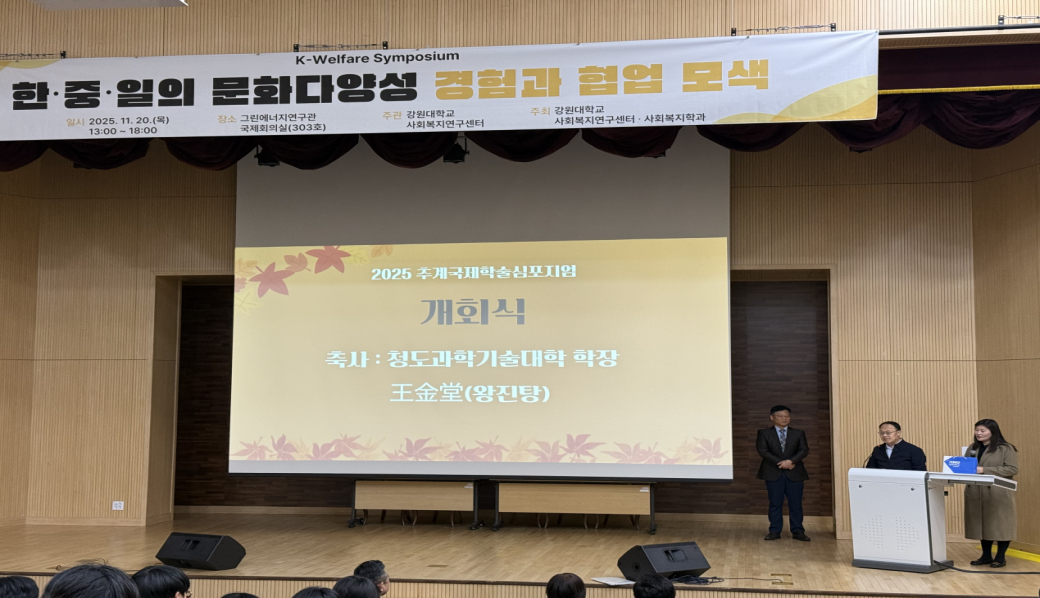 11月20日,青島科技大學(xué)法學(xué)院代表團(tuán)應(yīng)邀出席“2025年第五屆江原大學(xué)社會(huì)福利研究中心秋季學(xué)術(shù)大會(huì)及國(guó)際學(xué)術(shù)研討會(huì)”,本次大會(huì)由中、韓、日三國(guó)高校代表共200多人參加。代表團(tuán)由法學(xué)院院長(zhǎng)王金堂、副院長(zhǎng)陳為智帶隊(duì),學(xué)院師生共8人參加。此次大會(huì)以“在快速變化的社會(huì)、經(jīng)濟(jì)與環(huán)境背景下,探索社會(huì)福利學(xué)的學(xué)術(shù)發(fā)展與實(shí)踐應(yīng)對(duì)”為主題,旨在加強(qiáng)各國(guó)在社會(huì)福祉治理、老齡化挑戰(zhàn)與智慧養(yǎng)老服務(wù)等領(lǐng)域的交流合作。