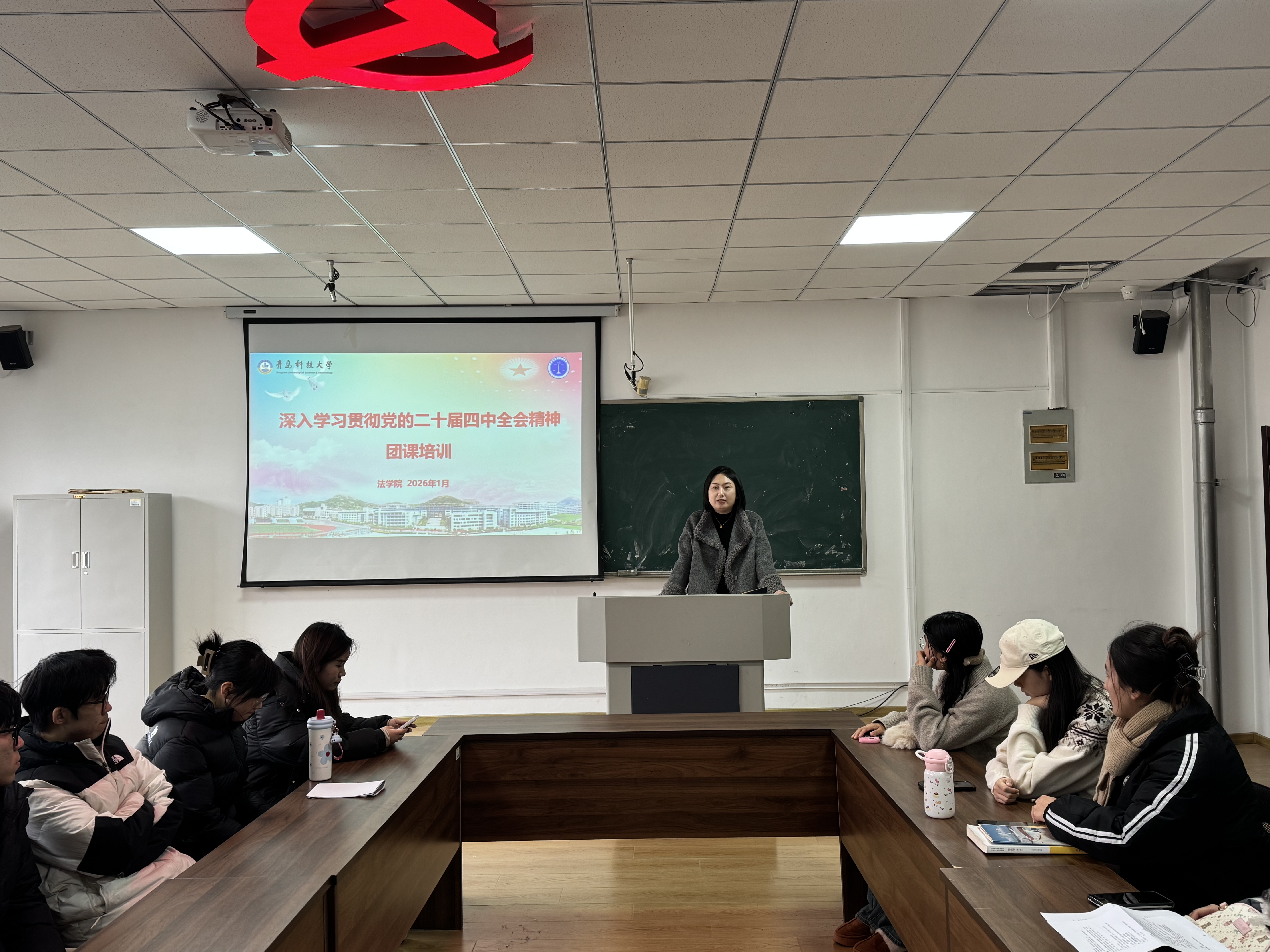 為深入學(xué)習(xí)貫徹黨的二十屆四中全會(huì)精神,引導(dǎo)青年學(xué)生深刻把握全會(huì)核心要義,將個(gè)人理想融入強(qiáng)國(guó)建設(shè)、民族復(fù)興的偉大征程,1月6日,法學(xué)院在黨團(tuán)活動(dòng)室開展黨的二十屆四中全會(huì)精神專題學(xué)習(xí)主題團(tuán)課。本次團(tuán)課由學(xué)院團(tuán)委副書記高媛主講,2025年秋季入團(tuán)積極分子及青馬工程學(xué)員共同參與學(xué)習(xí)。