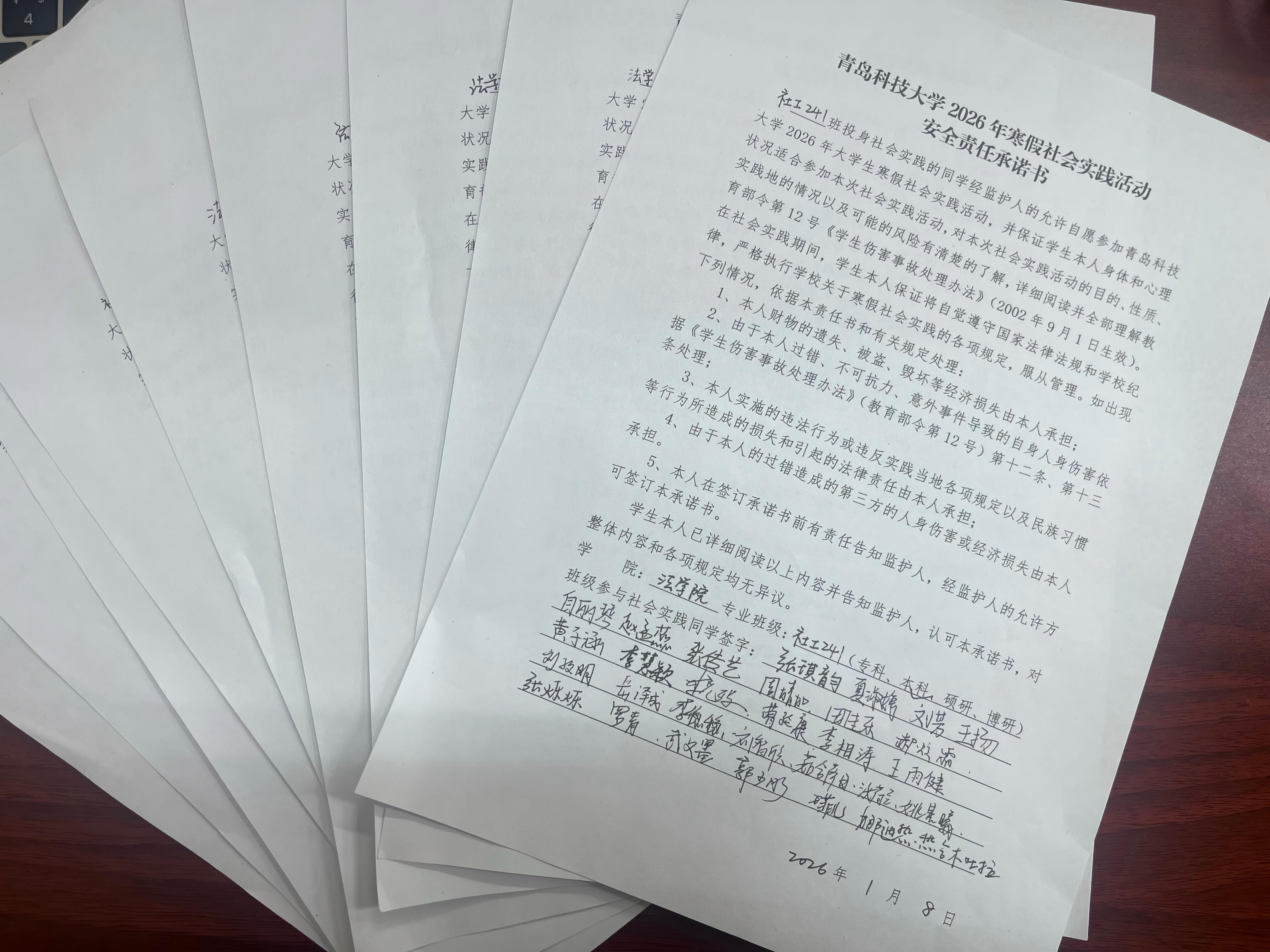 王夢珂還就社會實踐的具體組織實施流程、材料報送規(guī)范、宣傳報道要點(diǎn)等工作逐一說明,并現(xiàn)場耐心解答了同學(xué)們在實踐選題、團(tuán)隊組建、安全保障等方面的疑問,為大家掃清實踐路上的困惑。會后,參與社會實踐的同學(xué)簽訂了2026年寒假社會實踐活動安全責(zé)任承諾書。
