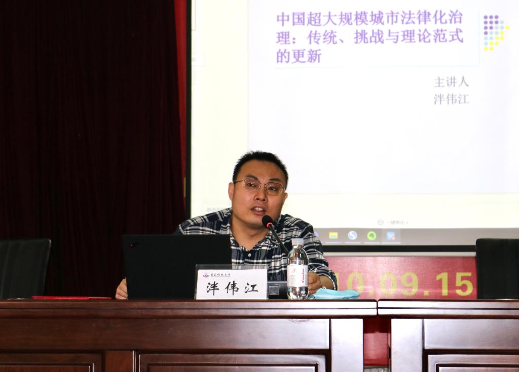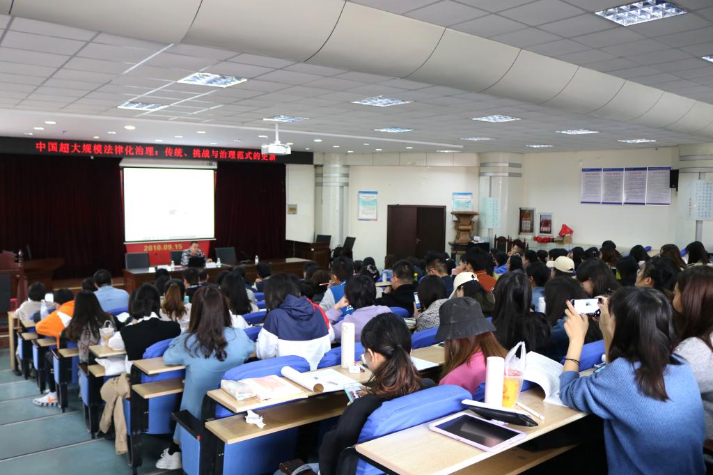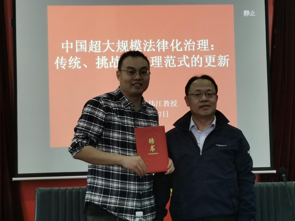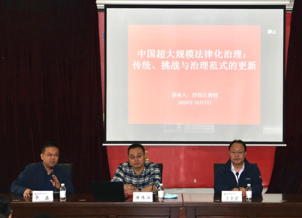 聘任儀式結(jié)束后,泮偉江教授為學院師生帶來了題為“中國超大規(guī)模法律化治理:傳統(tǒng)、挑戰(zhàn)與治理范式的更新”的專題講座,講座由法學院副院長李鑫副教授主持,法學院院長王金堂教授出席,學院部分教師、研究生及本科生積極參與。