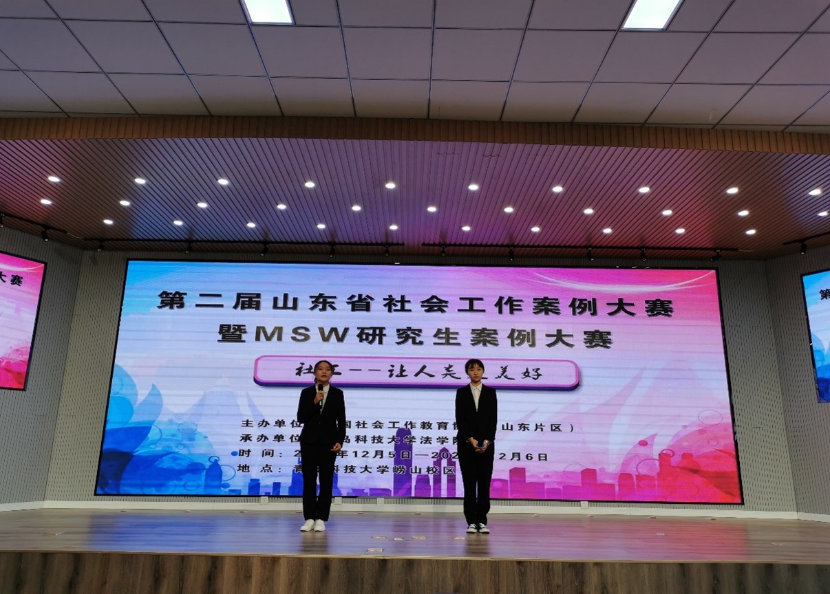 12月5日至12月6日,第二屆山東省社會(huì)工作案例大賽暨M(jìn)SW研究生案例大賽在青島科技大學(xué)嶗山校區(qū)舉行。此次賽事由中國社會(huì)工作教育協(xié)會(huì)(山東片區(qū))主辦,青島科技大學(xué)法學(xué)院承辦,以“社工-讓人類更美好”為主題,。來自全省13所高校的社會(huì)工作專業(yè)本科生和研究生組成的36支代表隊(duì)參加了比賽,專家、評委和師生共200余人參加了賽事活動(dòng)。