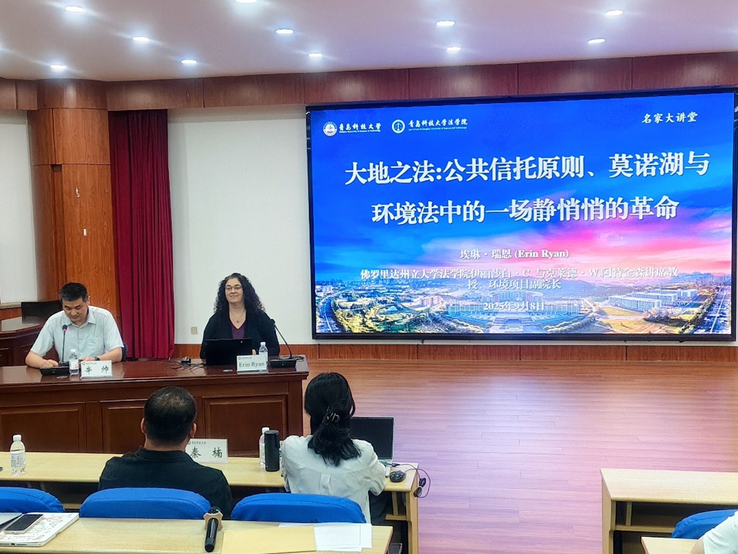 9月8日晚,法學(xué)院在弘毅樓A201模擬法庭舉辦“名家大講堂”。本期講堂的主題為“Law for the Land: The Public Trust Doctrine, Mono Lake, and a Quiet Revolution in Environmental Law”,佛羅里達(dá)州立大學(xué)法學(xué)院Erin Ryan教授受邀主講。講座由法學(xué)院院長助理、法律系主任辛帥主持并擔(dān)任翻譯,法學(xué)院青年教師代表秦楠、李浩梅任與談人,法學(xué)院研究生代表參加了本次講座。