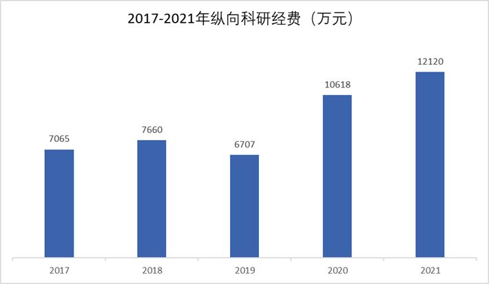 學(xué)校縱向科研經(jīng)費及項目數(shù)量創(chuàng)新高。第十次黨代會以來,學(xué)校縱向科研項目總經(jīng)費達(dá)到4.4億元(圖1),承擔(dān)國家級項目395項,其中重點、重大項目(參與)53項,國家自然科學(xué)基金項目259項。2021年國家自然基金立項63項,為近十年來最高數(shù)量。