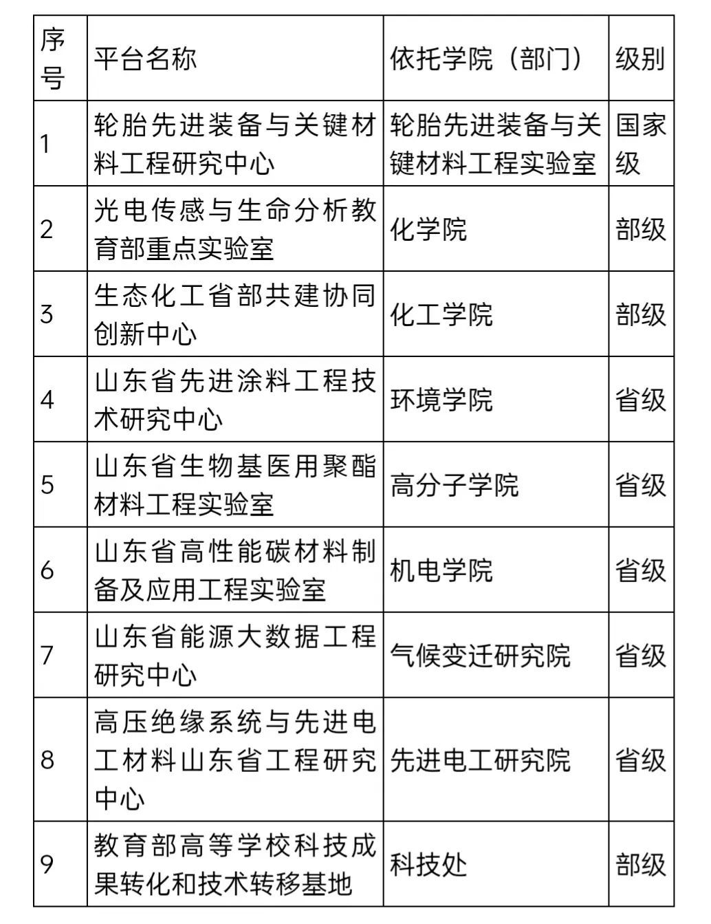 第十次黨代會以來,學(xué)校新增省部級以上科研平臺9個,市廳級科研平臺26個,行業(yè)重點實驗室1個(表1)。2020年生態(tài)化工省部共建協(xié)同創(chuàng)新中心獲批成立,2021年輪胎先進(jìn)裝備與關(guān)鍵材料國家工程研究中心獲批新序列,標(biāo)志著我校國家級序列平臺建設(shè)取得新成效。化學(xué)、化工和材料學(xué)三個學(xué)科均實現(xiàn)了國家級平臺的全覆蓋,平臺建設(shè)有效支撐了學(xué)校的學(xué)科建設(shè)。