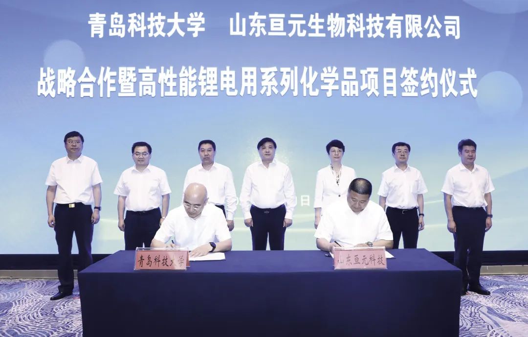 2022年7月,我校與山東亙元生物科技有限公司戰(zhàn)略合作暨高性能鋰電用系列化學(xué)品項目正式簽約(圖3),合同金額達(dá)到了7.7億元,是目前山東省單筆金額最高的校企合作項目。項目全部實施后,將分別建設(shè)萬噸生產(chǎn)裝置,預(yù)計年銷售收入總額60.1億元,年利稅總額24.695億元。