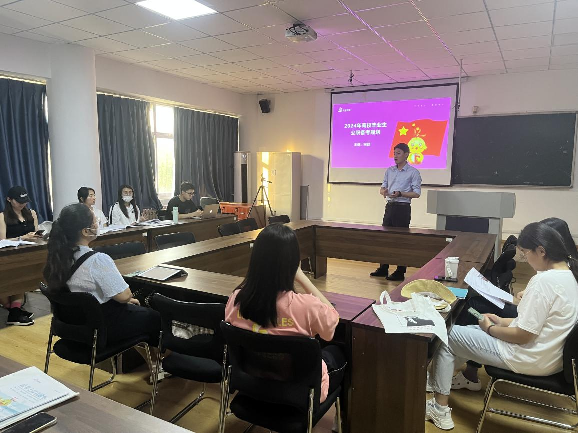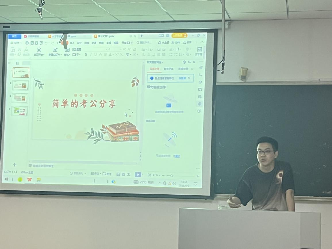 為引導(dǎo)學(xué)生樹立學(xué)業(yè)規(guī)劃意識(shí)和正確的就業(yè)觀,提升高質(zhì)量就業(yè)。結(jié)合學(xué)習(xí)貫徹主題教育要求,法學(xué)院研究生會(huì)立足學(xué)生需求、學(xué)情實(shí)際,于6月9日下午在弘毅樓C406舉行了考公經(jīng)驗(yàn)分享會(huì),邀請(qǐng)張俊豪、王慧宏和宋健作為分享嘉賓,法學(xué)院研究生會(huì)全體成員參加了分享會(huì)。