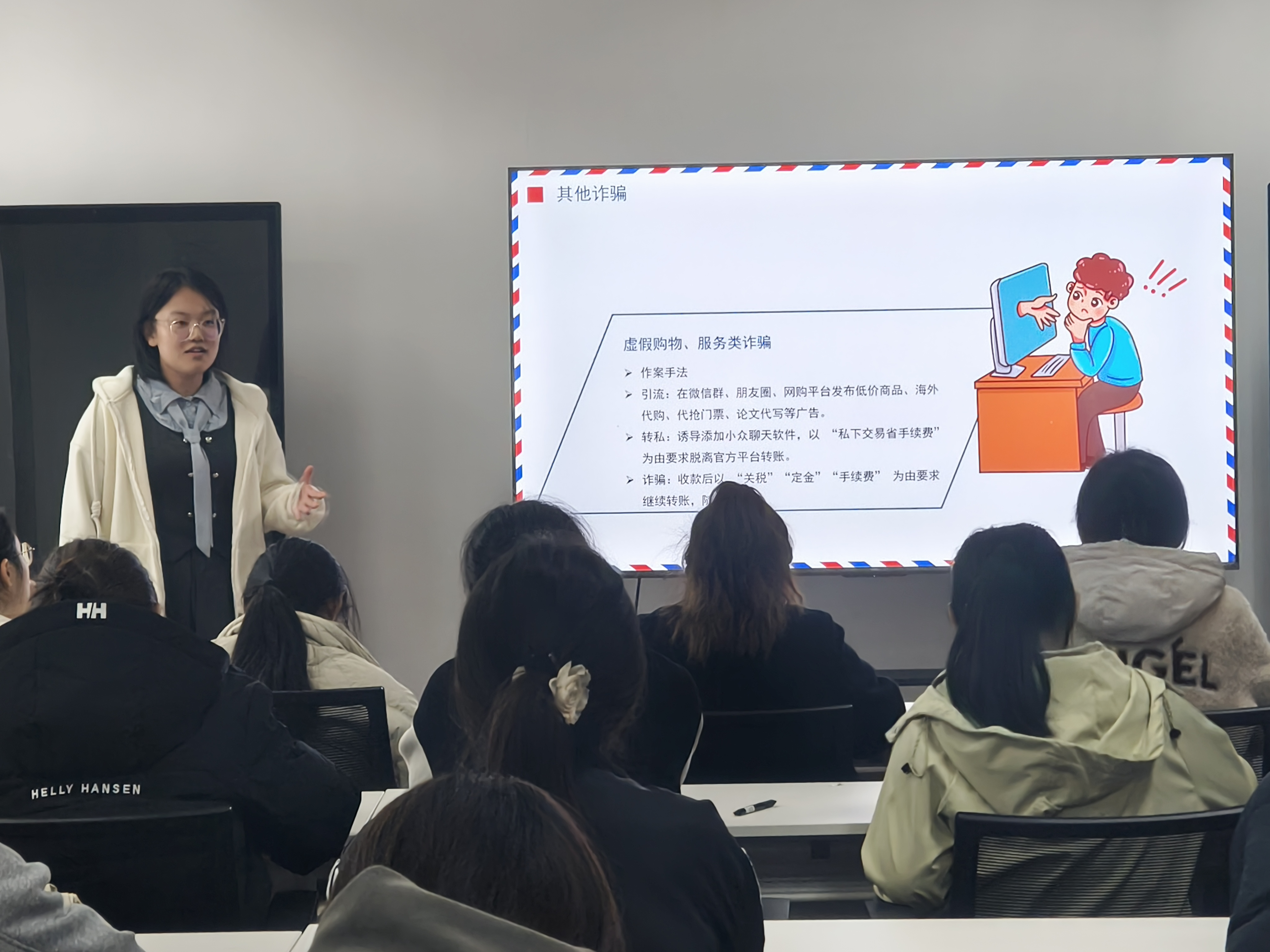 在經(jīng)典案例分享環(huán)節(jié),重點(diǎn)剖析了“美容被貸款”“兼職洗錢涉幫信罪”“校園借貸騙局”“分期手機(jī)詐騙”等真實(shí)案例。這些案例通過還原受害者從被誘騙到遭受損失的全過程,揭示了詐騙分子利用師生社會(huì)經(jīng)驗(yàn)不足、貪圖小利等心理實(shí)施詐騙的套路,并結(jié)合《中華人民共和國刑法》相關(guān)條款,講解了幫信罪的法律定義、認(rèn)定標(biāo)準(zhǔn)及法律后果,強(qiáng)調(diào)了出租、出借銀行卡的嚴(yán)重危害。
