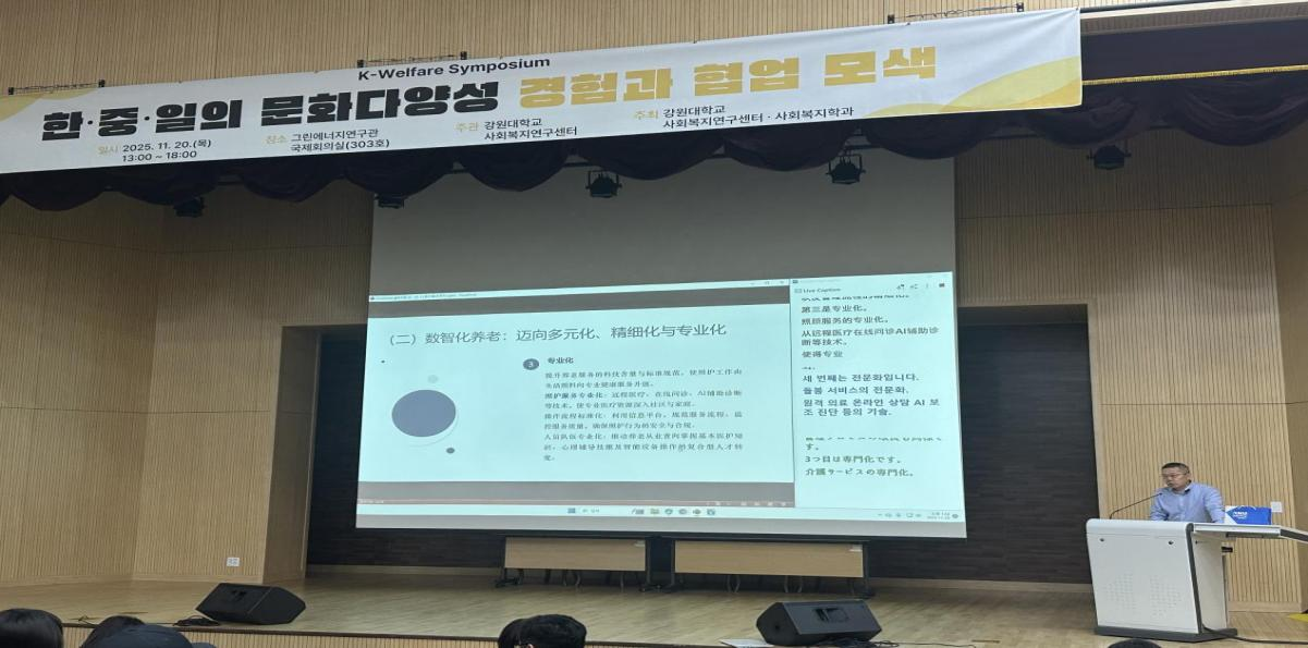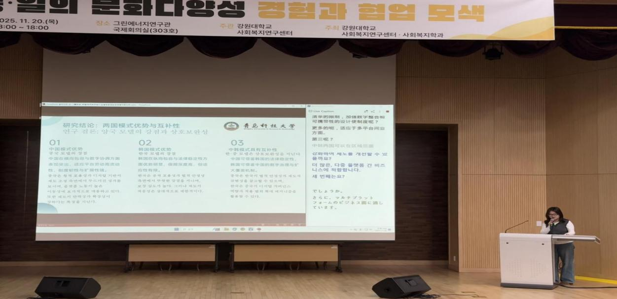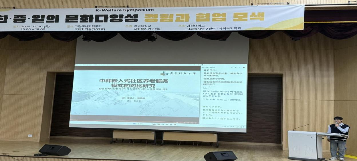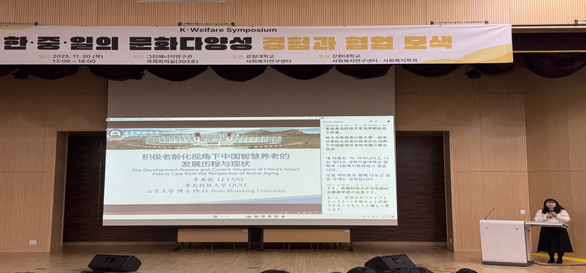 11月20日,青島科技大學(xué)法學(xué)院代表團(tuán)應(yīng)邀出席“2025年第五屆江原大學(xué)社會(huì)福利研究中心秋季學(xué)術(shù)大會(huì)及國(guó)際學(xué)術(shù)研討會(huì)”,本次大會(huì)由中、韓、日三國(guó)高校代表共200多人參加。代表團(tuán)由法學(xué)院院長(zhǎng)王金堂、副院長(zhǎng)陳為智帶隊(duì),學(xué)院師生共8人參加。此次大會(huì)以“在快速變化的社會(huì)、經(jīng)濟(jì)與環(huán)境背景下,探索社會(huì)福利學(xué)的學(xué)術(shù)發(fā)展與實(shí)踐應(yīng)對(duì)”為主題,旨在加強(qiáng)各國(guó)在社會(huì)福祉治理、老齡化挑戰(zhàn)與智慧養(yǎng)老服務(wù)等領(lǐng)域的交流合作。
