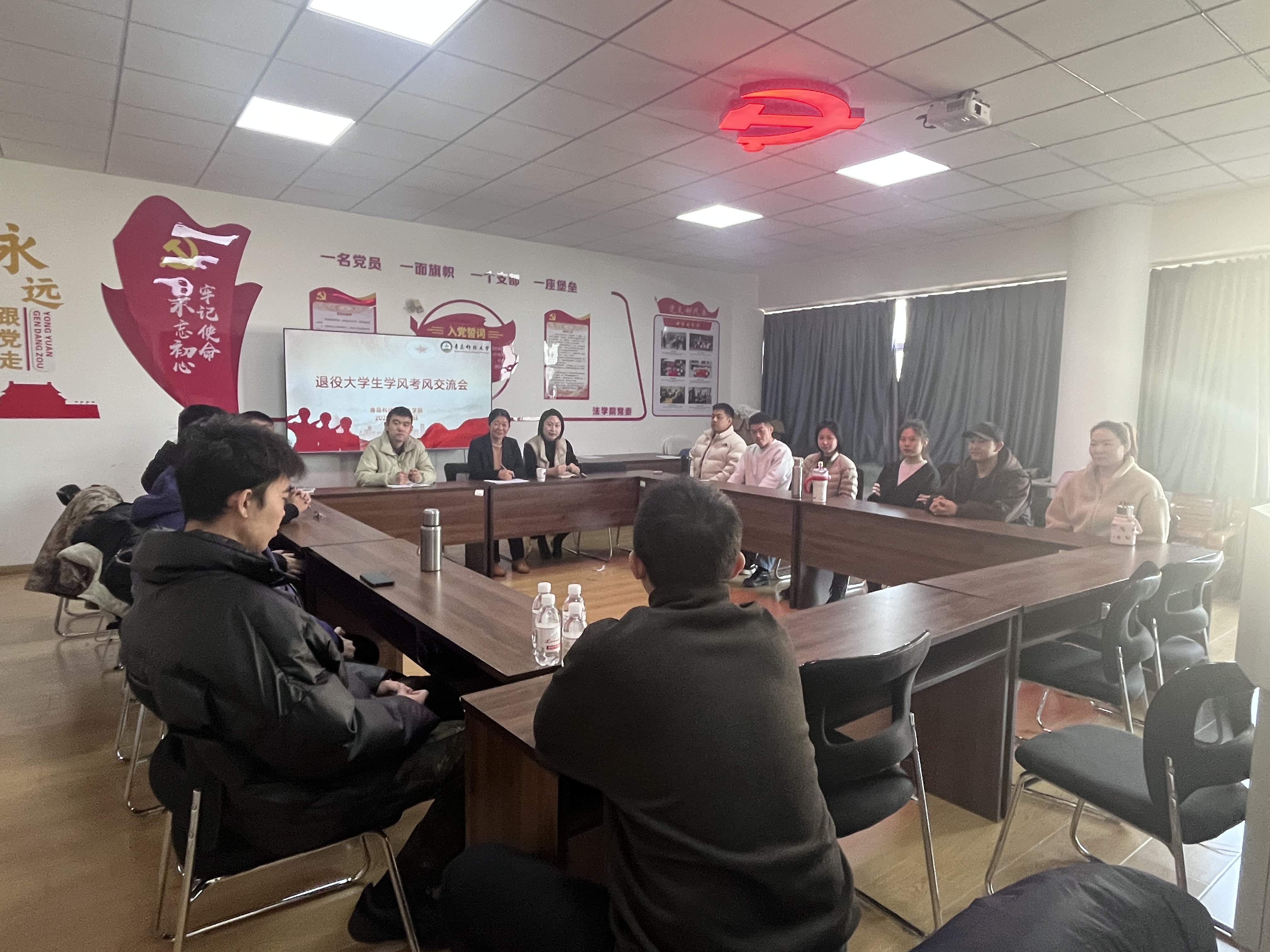 為精準(zhǔn)對(duì)接退役大學(xué)生士兵成長(zhǎng)發(fā)展需求,以優(yōu)良學(xué)風(fēng)賦能退役大學(xué)生成長(zhǎng),12月12日,法學(xué)院在弘毅樓黨團(tuán)活動(dòng)室召開(kāi)退役大學(xué)生士兵學(xué)風(fēng)考風(fēng)交流會(huì)。法學(xué)院黨委副書(shū)記兼副院長(zhǎng)王祥梅、全體輔導(dǎo)員及退役大學(xué)生士兵代表參加會(huì)議。