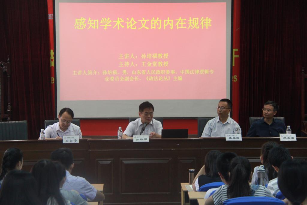 6月11日上午,山東省政府參事、中國法律邏輯專業(yè)委員會副會長、《政法論叢》主編孫培福教授做客青島科技大學法學研究生論壇,面向全校師生傳授“學術(shù)論文寫作的內(nèi)在規(guī)律”。本次論壇由副院長王金堂教授主持,張福德教授、趙玉增教授擔任點評嘉賓。