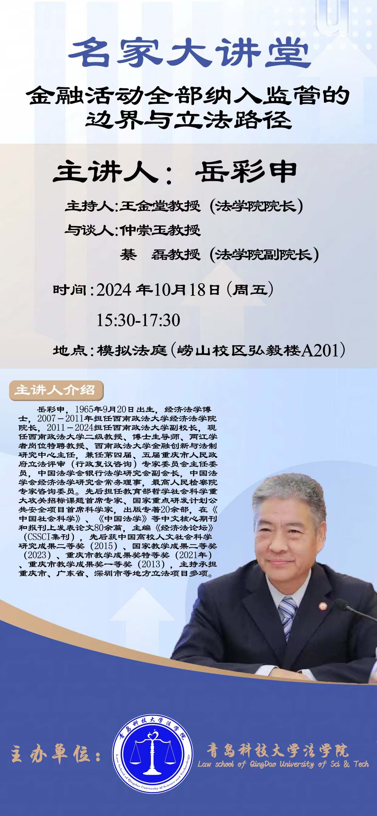 法學(xué)院名家大講堂:金融活動全部納入監(jiān)管的邊界與立法路徑