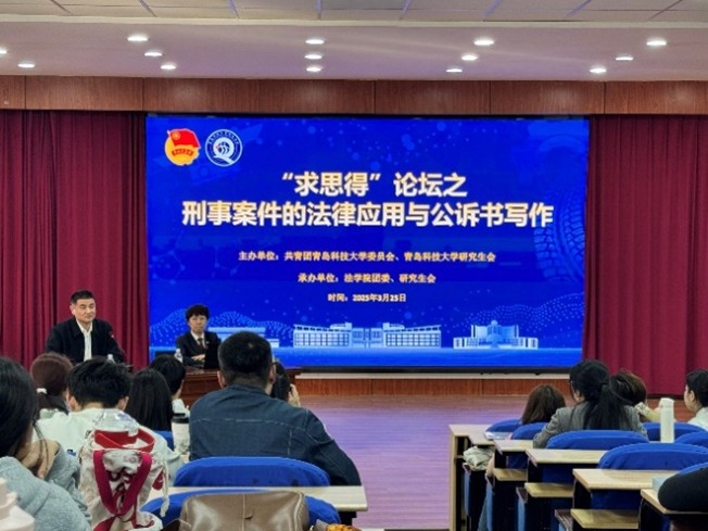 3月25日下午,“求思得”論壇之“刑事案件的法律應用與公訴書寫作”在法學院模擬法庭成功舉辦。本期講堂的主題為,青島市嶗山區(qū)人民檢察院黨組成員,檢察委員會專職委員,四級高級檢察官隋超受邀主講。