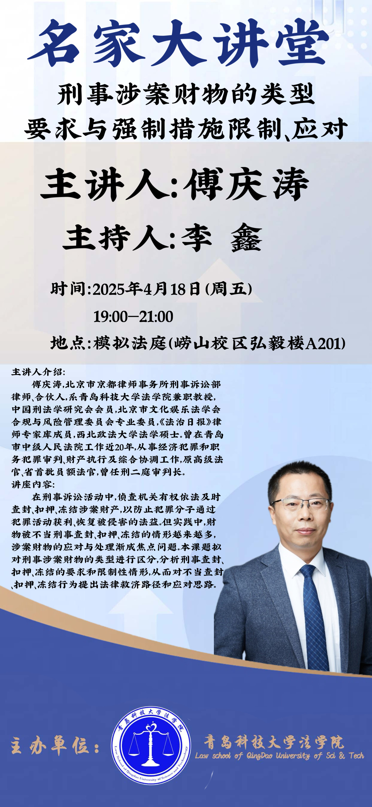 法學院名家大講堂:刑事涉案財物的類型要求與強制措施限制、應對