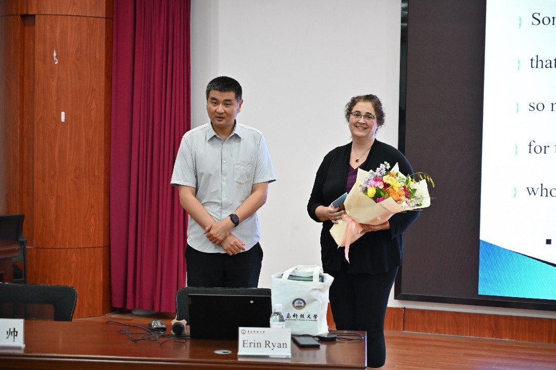 講座結(jié)束后,辛帥代表法學(xué)院向Ryan教授贈送禮物并予以教師節(jié)祝福。