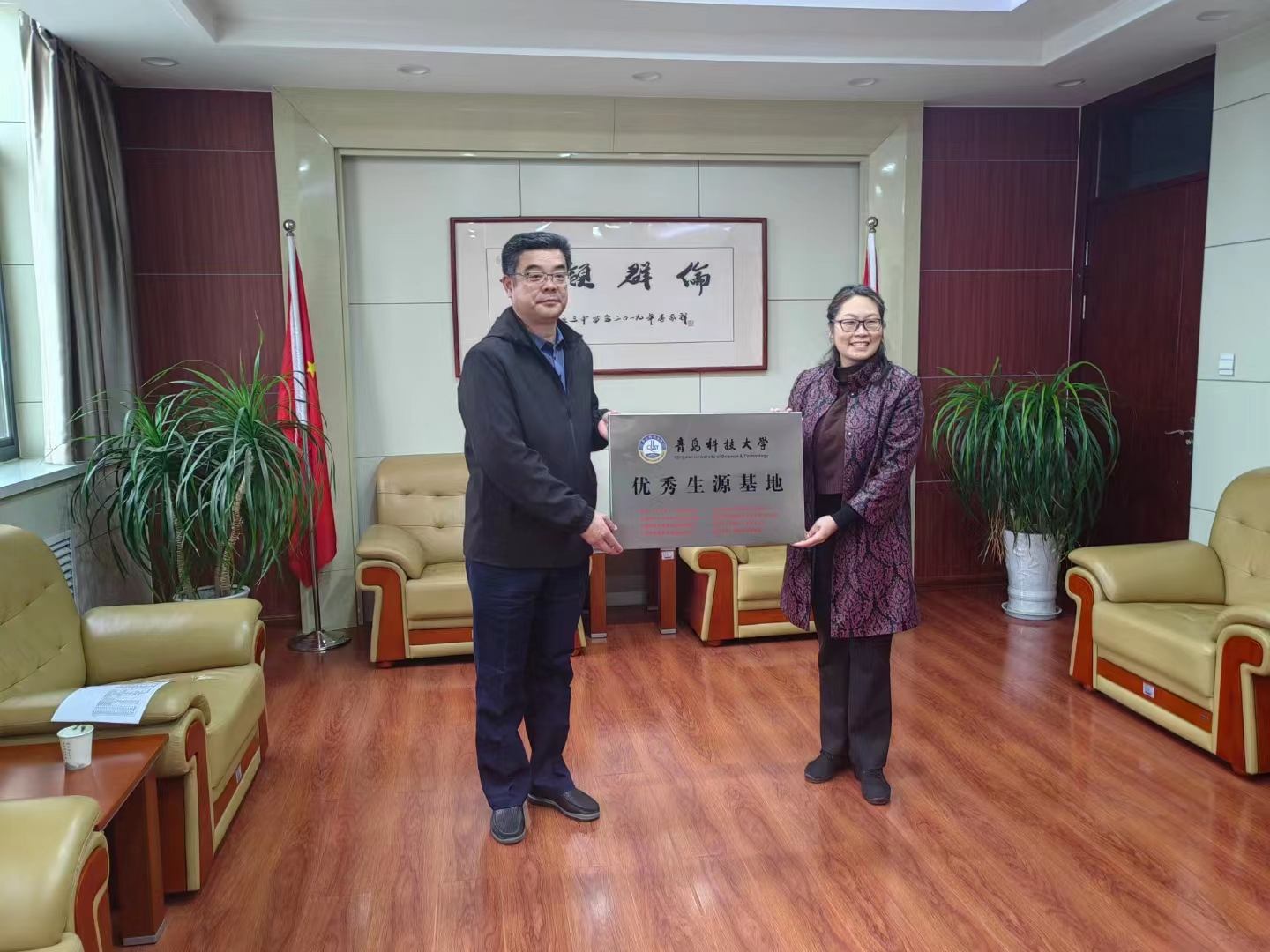 座談會后,李卉分別與三所高中代表簽訂《優(yōu)秀生源基地共建協(xié)議書》,并授予“青島科技大學(xué)優(yōu)質(zhì)生源基地”銅牌。
